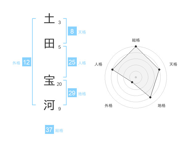 土田 宝河さんの総格は37画の5点