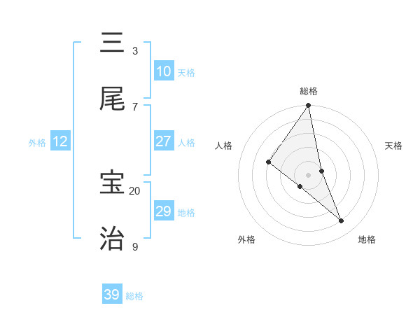三尾 宝治さんの総格は39画の5点