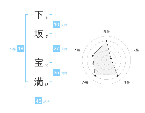 下坂 宝満さんを姓名の画数から五運を鑑定