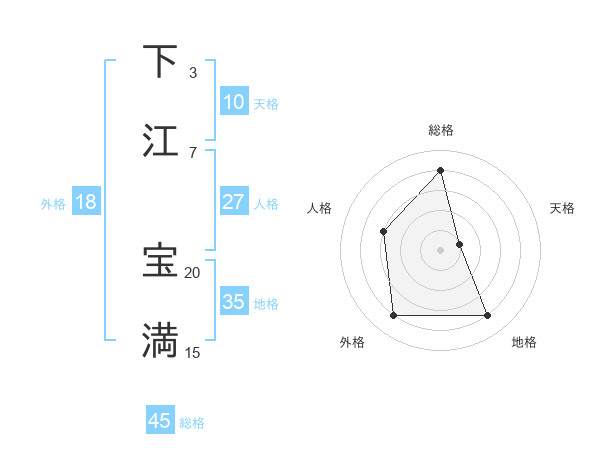 下江 宝満さんの総格は45画の4点!