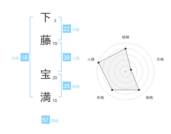 下藤 宝満さんの天格は22画の1点!