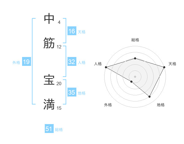 中筋 宝満さんの総格は51画の3点!