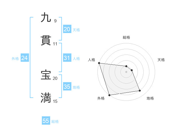 九貫 宝満さんの総格は55画の1点!