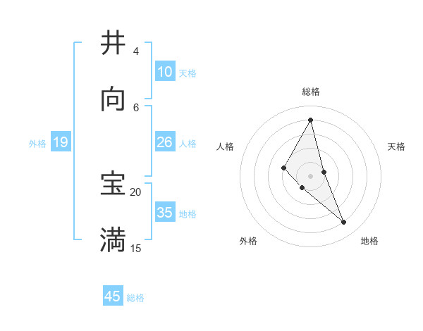 井向 宝満さんの総格は45画の4点!
