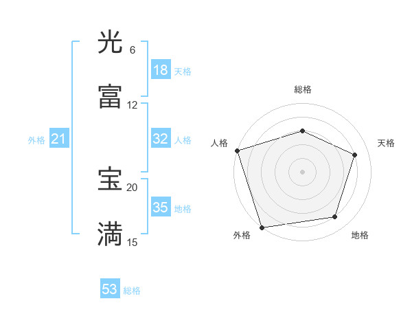 光富 宝満さんの総格は53画の3点!