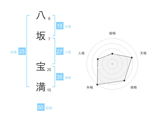 八坂 宝満さんを姓名の画数から五運を鑑定
