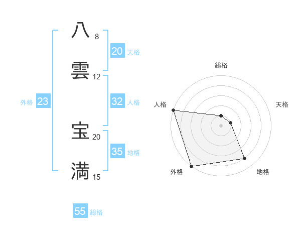 八雲 宝満さんの外格は23画の5点!