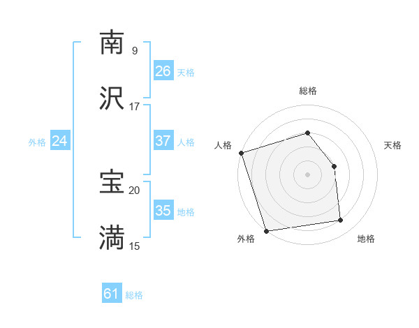 南沢 宝満さんの外格は24画の5点!