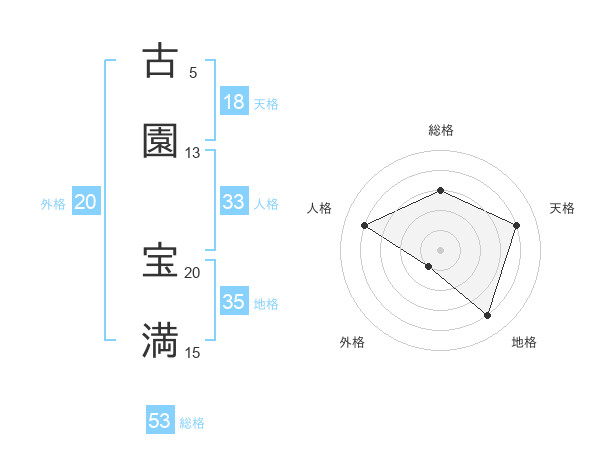 古園 宝満さんの地格は35画の4点!