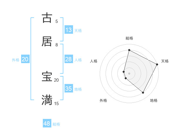 古居 宝満さんの天格は13画の5点!