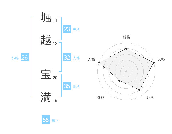 堀越 宝満さんを姓名の画数から五運を鑑定