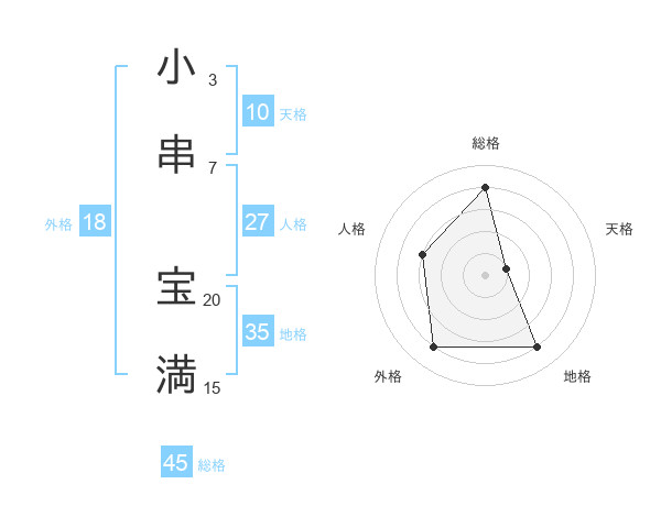 小串 宝満さんの総格は45画の4点!
