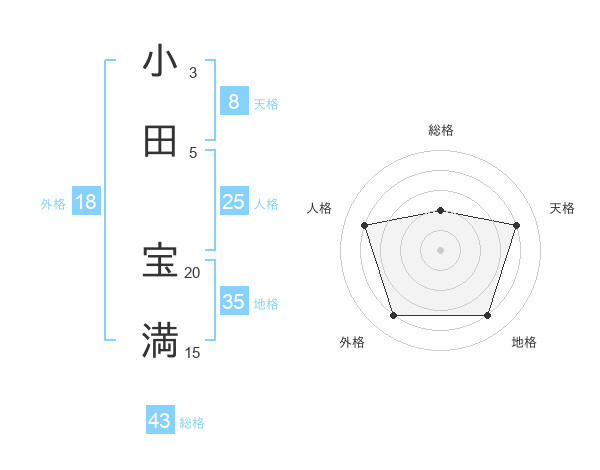 小田 宝満さんの総格は43画の2点!