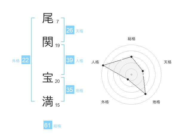 尾関 宝満さんを姓名の画数から五運を鑑定