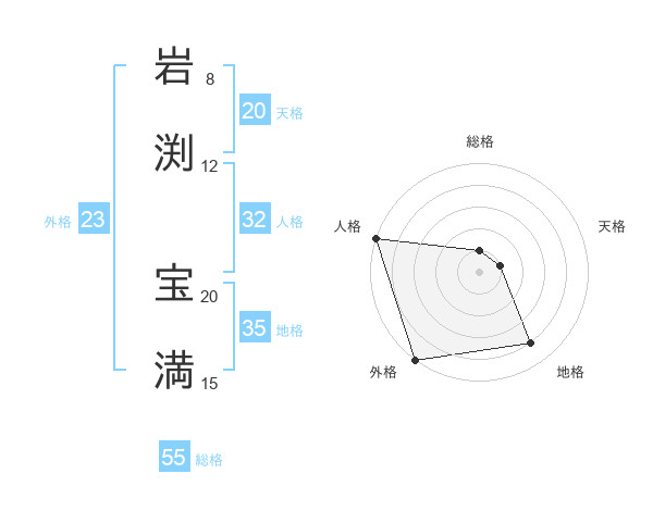 岩渕 宝満さんを姓名の画数から五運を鑑定