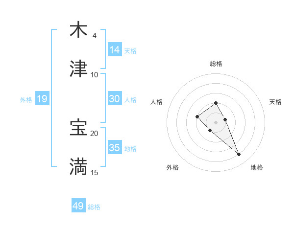 木津 宝満さんを姓名の画数から五運を鑑定