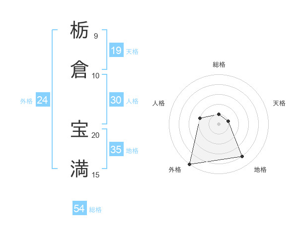 栃倉 宝満さんの総格は54画の1点!