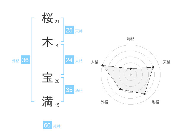 桜木 宝満さんを姓名の画数から五運を鑑定