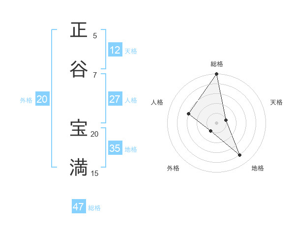 正谷 宝満さんの総格は47画の5点!
