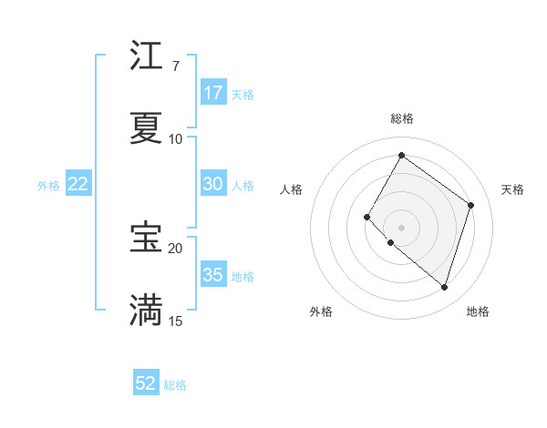 江夏 宝満さんの総格は52画の4点!