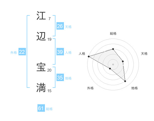 江辺 宝満さんの総格は61画の3点!