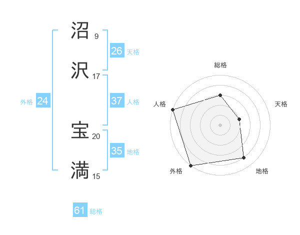 沼沢 宝満さんを姓名の画数から五運を鑑定