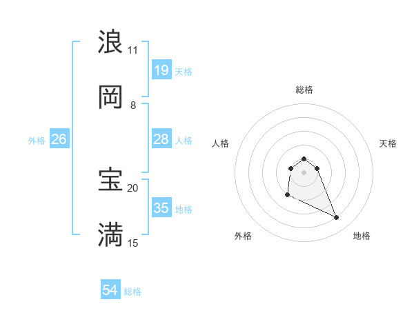 浪岡 宝満さんを姓名の画数から五運を鑑定