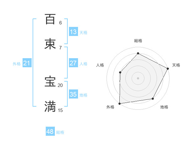 百束 宝満さんの天格は13画の5点!