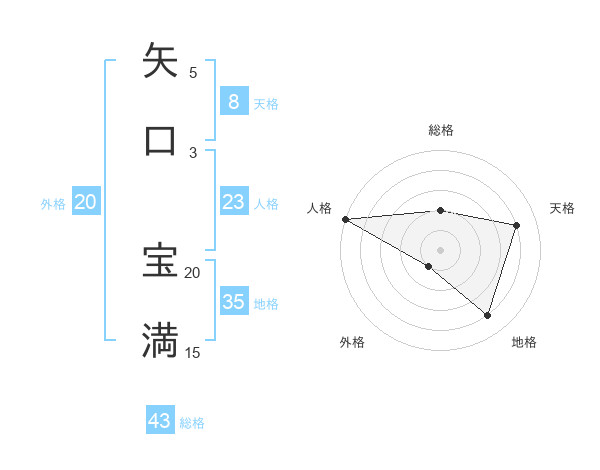 矢口 宝満さんの総格は43画の2点!