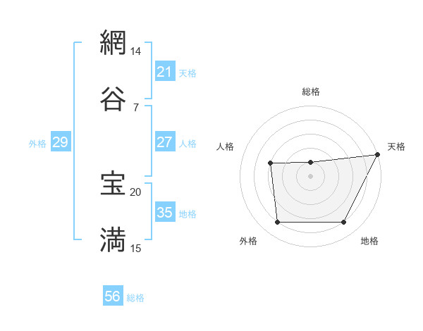 網谷 宝満さんを姓名の画数から五運を鑑定