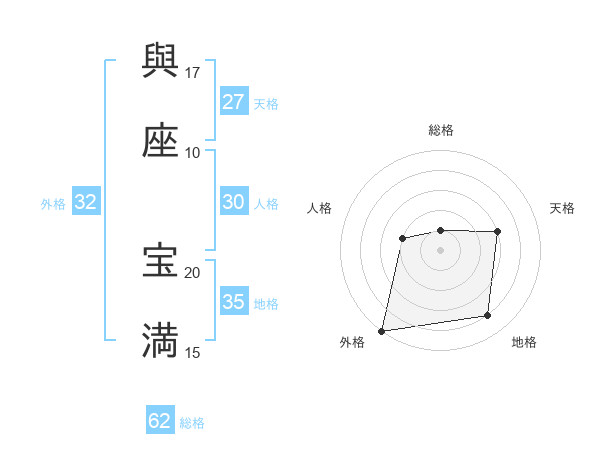 與座 宝満さんの外格は32画の5点!