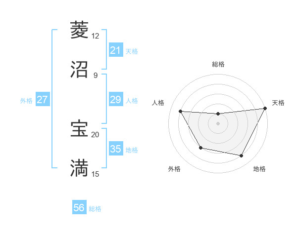菱沼 宝満さんの天格は21画の5点!