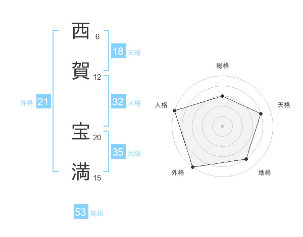 西賀 宝満さんを姓名の画数から五運を鑑定