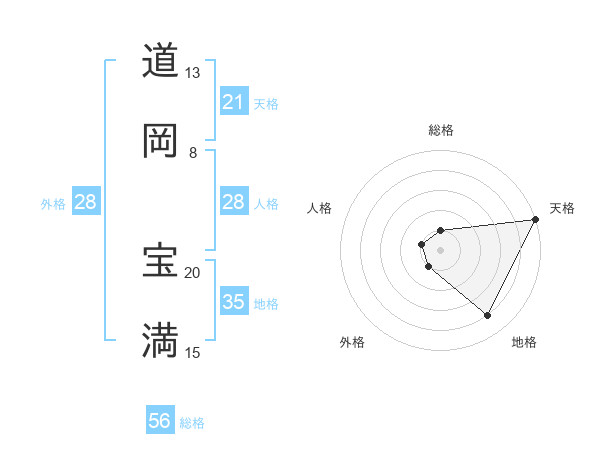 道岡 宝満さんの天格は21画の5点!