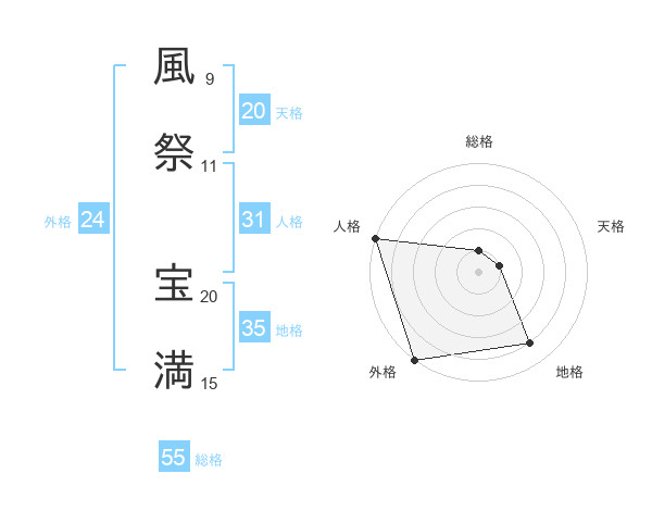 風祭 宝満さんの総格は55画の1点!