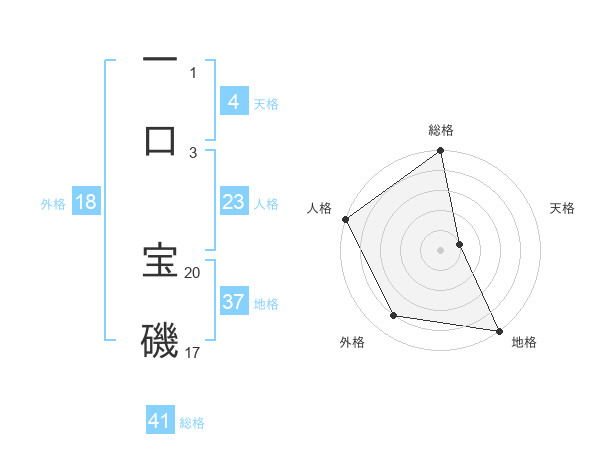 一口 宝磯さんの地格は37画の5点!