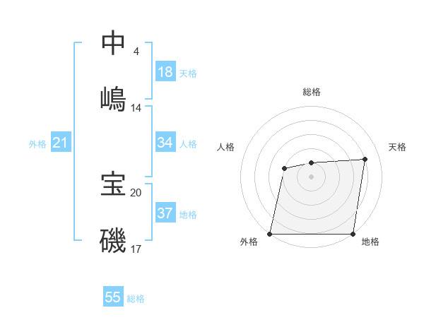 中嶋 宝磯さんを姓名の画数から五運を鑑定