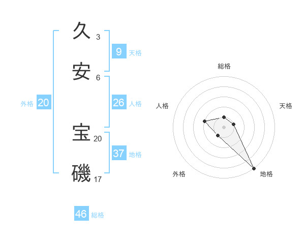 久安 宝磯さんの総格は46画の1点!