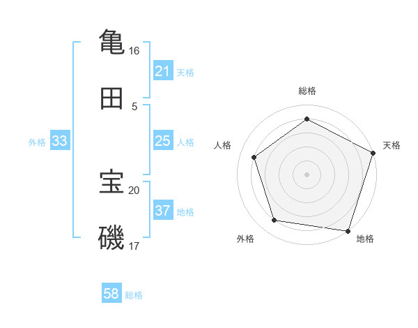 亀田 宝磯さんを姓名の画数から五運を鑑定