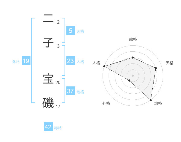 二子 宝磯さんの地格は37画の5点!