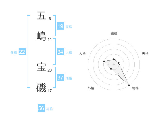 五嶋 宝磯さんを姓名の画数から五運を鑑定