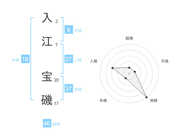 入江 宝磯さんを姓名の画数から五運を鑑定
