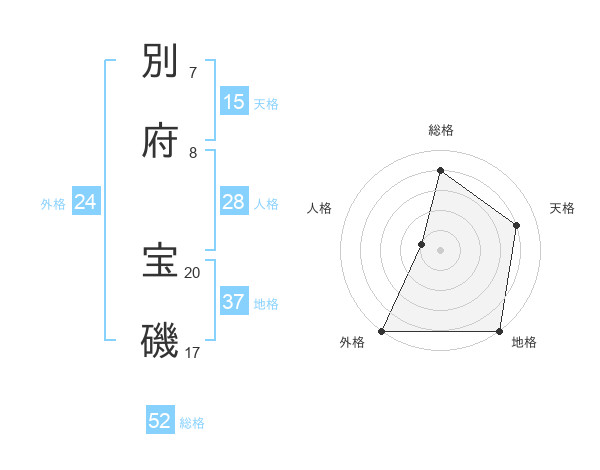 別府 宝磯さんの総格は52画の4点!