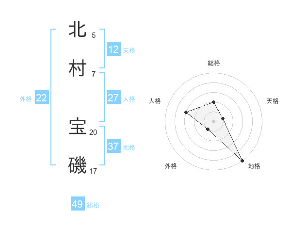 北村 宝磯さんの地格は37画の5点!