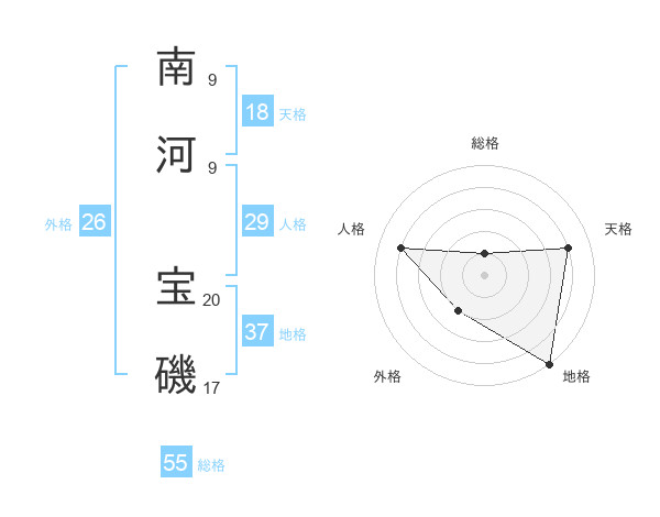 南河 宝磯さんを姓名の画数から五運を鑑定