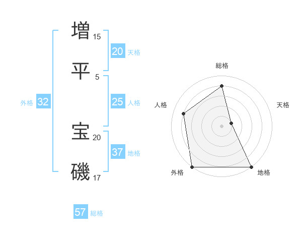 増平 宝磯さんの総格は57画の4点!