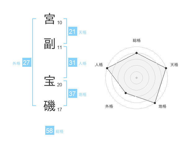 宮副 宝磯さんの総格は58画の4点!