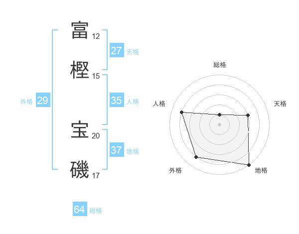 富樫 宝磯さんの地格は37画の5点!