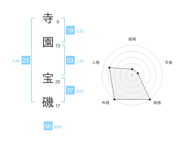 寺園 宝磯さんを姓名の画数から五運を鑑定