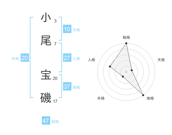 小尾 宝磯さんを姓名の画数から五運を鑑定